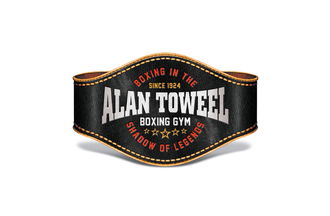 We designed this logo and identity for a pro bono client, the legendary boxing trainer Alan Toweel. The idea here was to take a standard 'boxing' type logo and make it unique. We decided to use the actual shape of a championship belt as the holding device, but didn’t stop there. Bringing in realistic textures and creating a virtual 'logo belt' make the logo something very special. Some of the final CI elements include 'mini belt' business cards, cover sheets, letterheads and branding on some training gear.