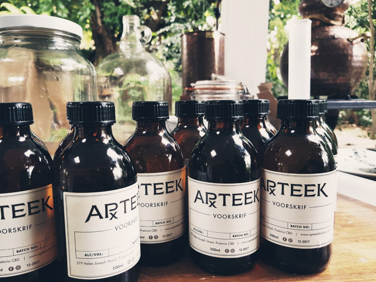 Close-up of some of the sample bottle label options