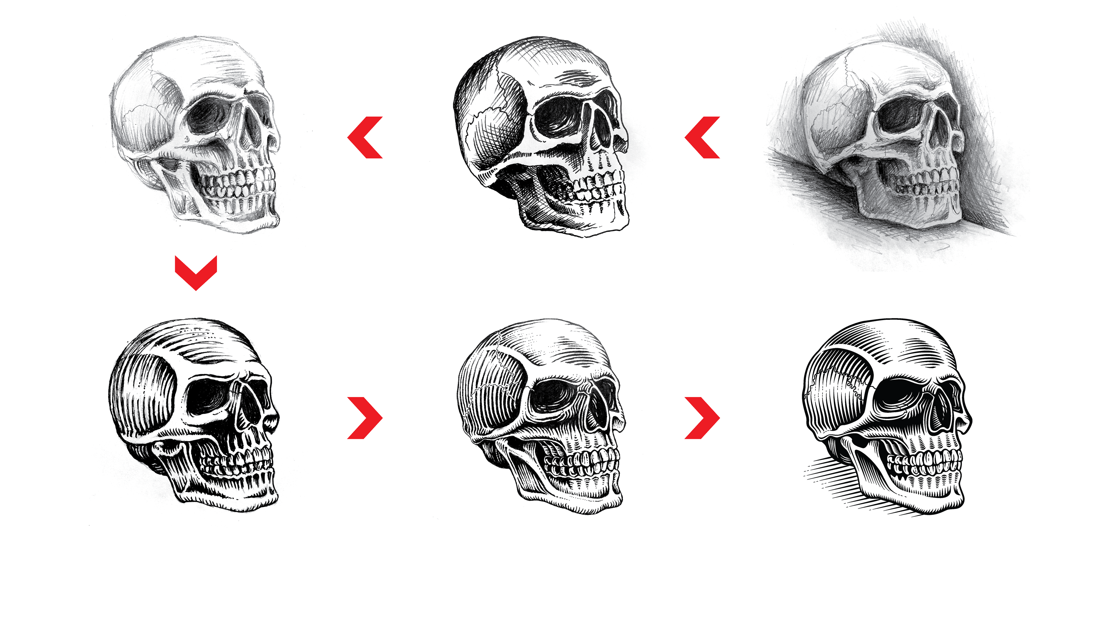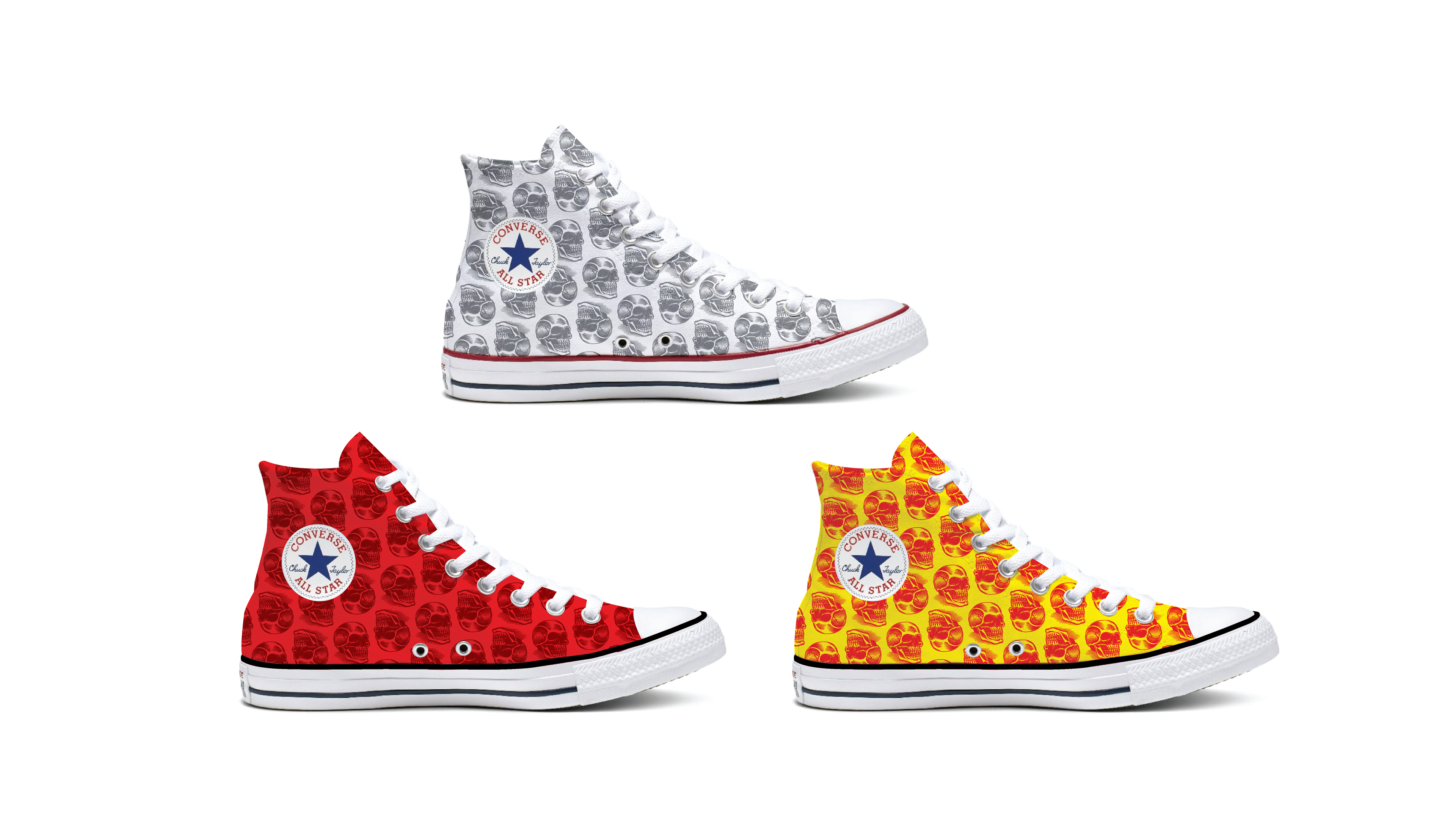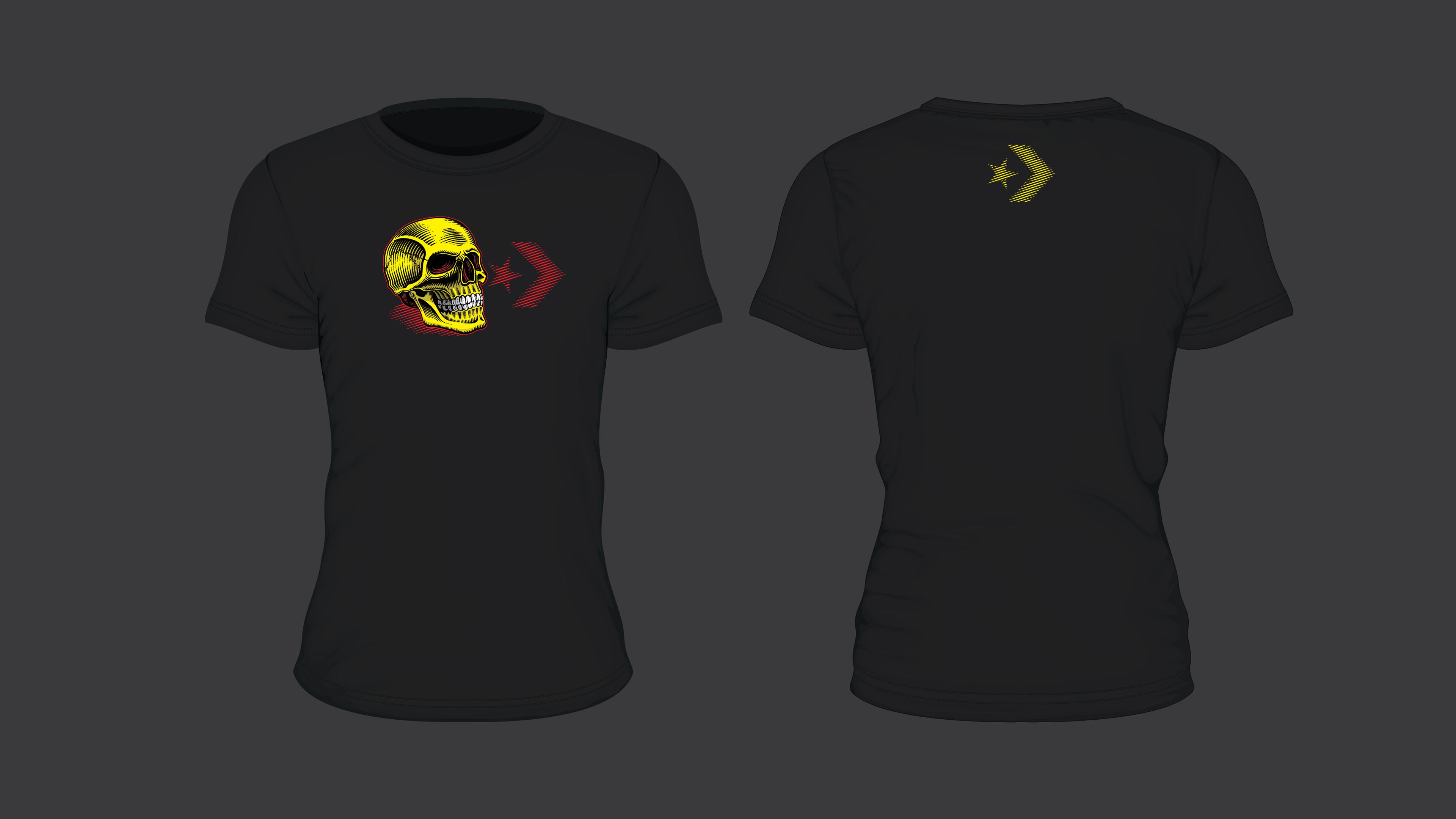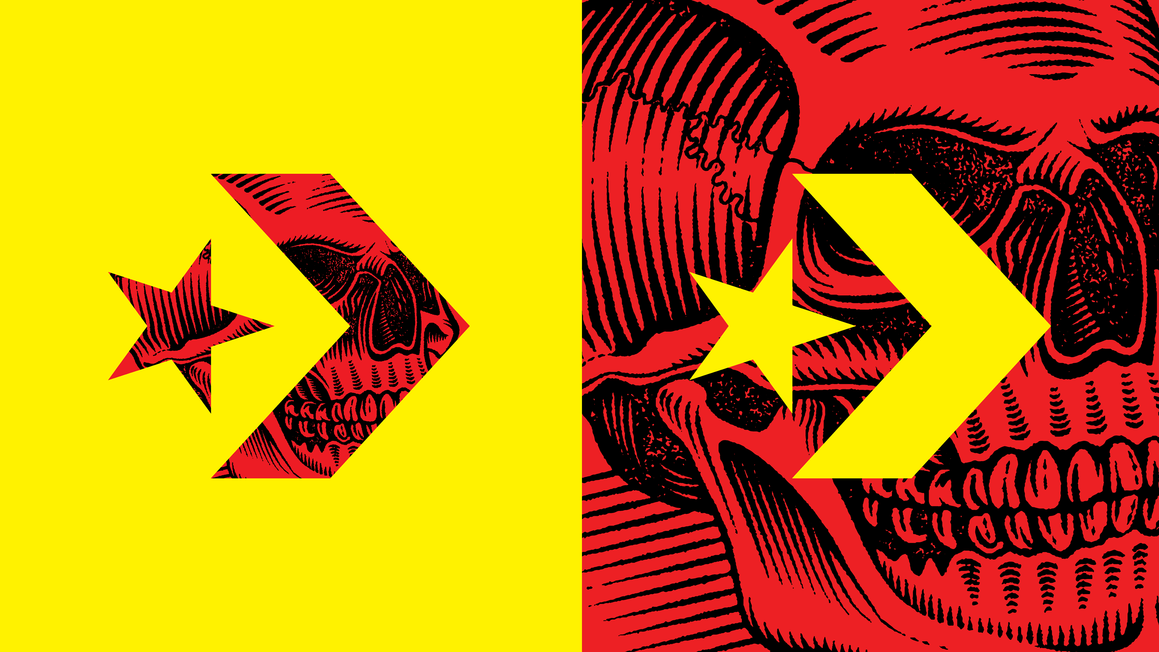 This is the first part of two proactive projects created for Converse. I have always wanted to create an illustration-based design for clothing, based on a scratch-board/wood-etch technique. Starting with a few sketches, the process lead to an almost final ink illustration, which was scanned and redrawn as a full vector skull design. From here, it could be easily edited, changing colours, adding outlines and shading, as well as applying an old printed effect. This design was then used in different ways: on it's own, combined with the Converse logo, or step-and-repeated as a pattern. A few application ideas can also be seen below.