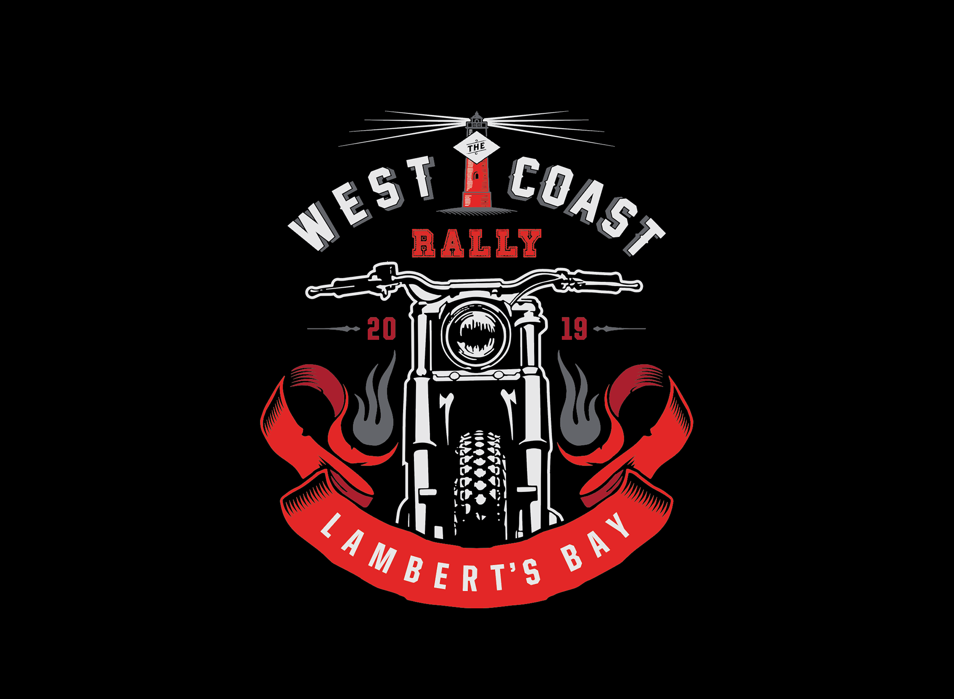 Every year we design the T-shirts for the West Coast Rally - the last few years have been only a slight tweak or two to the same design we did a while back, but this year we could do something new and fresh! A striking bike image with the good ol' Lambert's Bay light house WCR header logo.