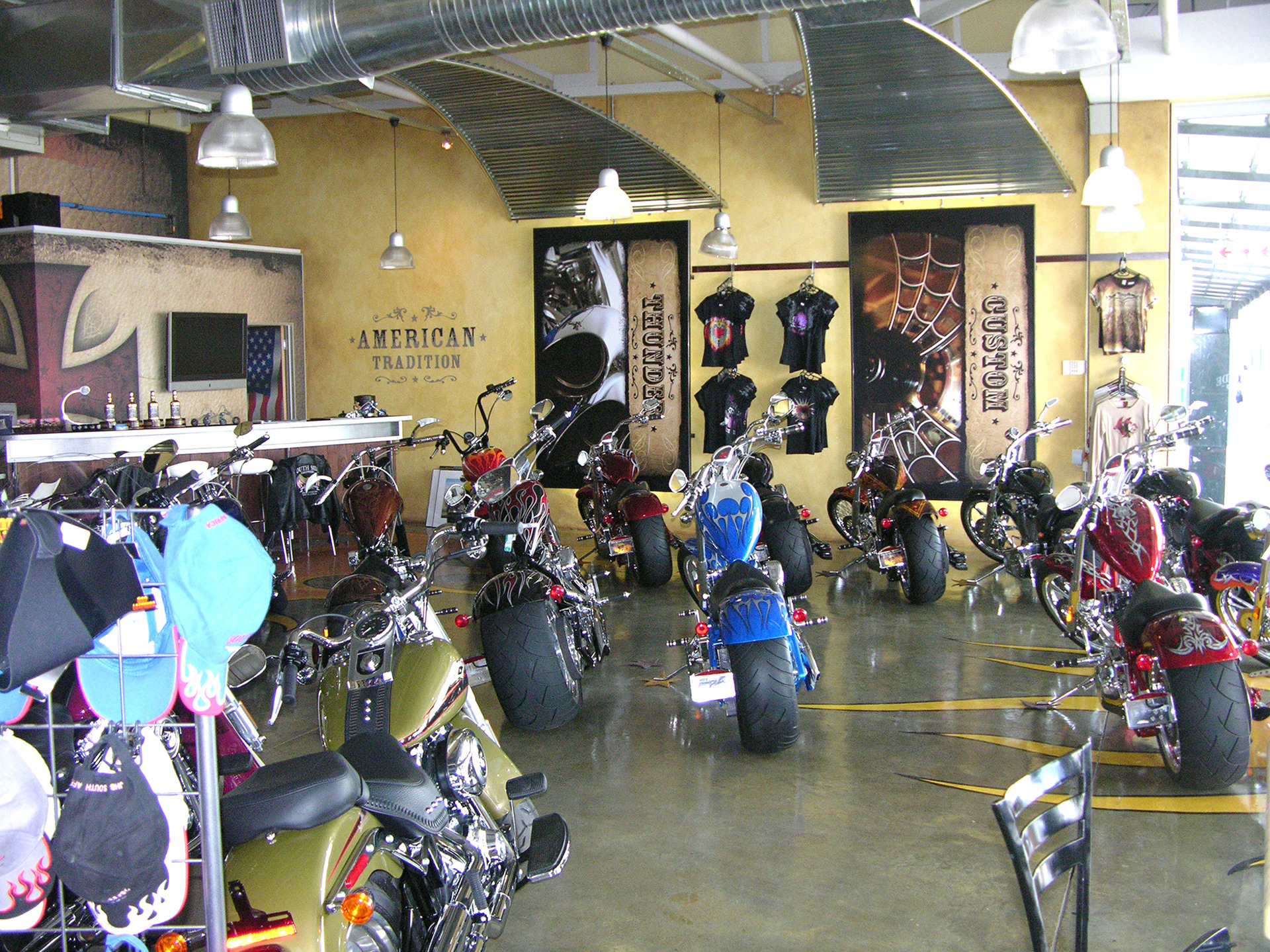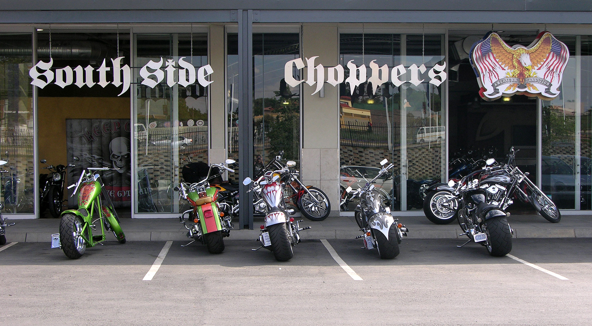 This was a project we did a few years ago – we were commissioned to design the interior for South Side Choppers on a very tight budget. The shop no longer exists unfortunately, but was quite a landmark in Cedar Square. This design project was also completed before their new logo was updated, which can also be found further along on our website. We partnered with Carlos Mota from Tilt Design to assist with the actual interior implementation, technical drawings and plans. Below are some basic artist impressions applied to the elevations and floor plan, and then some images of the finished shop.